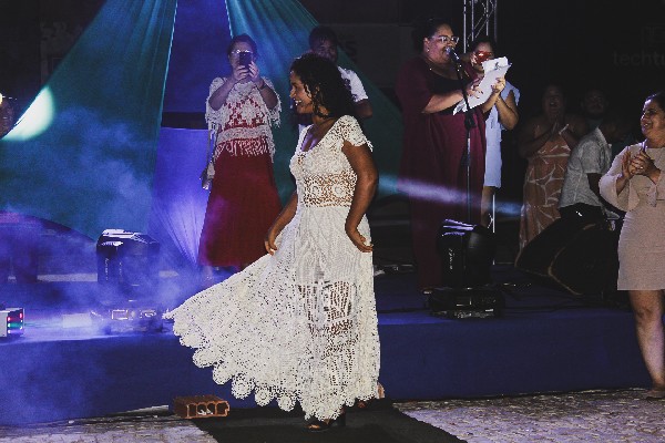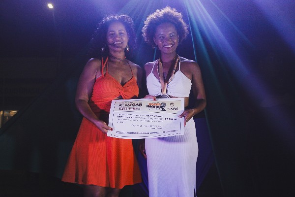 Um dos destaques da noite foi o Concurso Vozes Negras de Icapuí. A grande vencedora foi Luiza Hadassa Rebouças, da comunidade de Quitérias, que levou o prêmio de R$ 300 e garantiu vaga no concurso A Mais Bela Voz 2026. O segundo lugar ficou com Mayra Hellen Martins dos Santos, da Vila do Incra, que emocionou o público com a interpretação de "Como Nossos Pais". Ela recebeu R$ 200 e também assegurou participação no concurso em 2026.