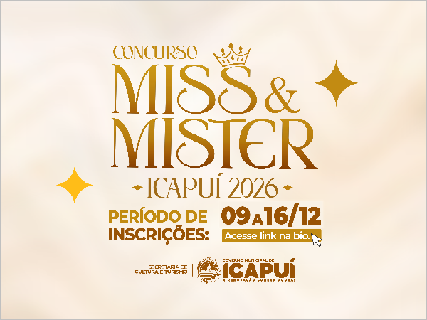 Abertas as inscrições para o Concurso Miss e Mister Icapuí 2026; [...]