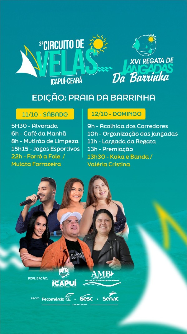 A Regata de Jangadas da Barrinha - 3º Circuito de Velas é uma realização da Associação dos Moradores da Barrinha (AMB) com o apoio da Prefeitura Municipal de Icapuí e outros parceiros.