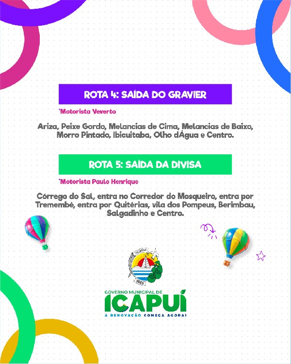 Para garantir a participação de todas as crianças do município, a Prefeitura disponibilizará rotas de transporte saindo das comunidades até o local do evento. Assim, ninguém fica de fora dessa grande celebração dedicada à infância.