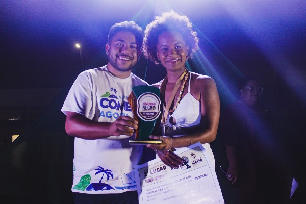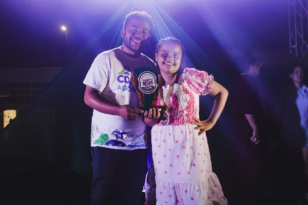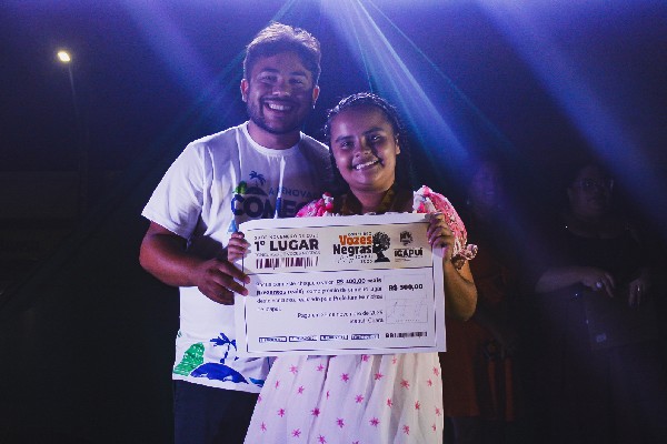 Um dos destaques da noite foi o Concurso Vozes Negras de Icapuí. A grande vencedora foi Luiza Hadassa Rebouças, da comunidade de Quitérias, que levou o prêmio de R$ 300 e garantiu vaga no concurso A Mais Bela Voz 2026. O segundo lugar ficou com Mayra Hellen Martins dos Santos, da Vila do Incra, que emocionou o público com a interpretação de "Como Nossos Pais". Ela recebeu R$ 200 e também assegurou participação no concurso em 2026.