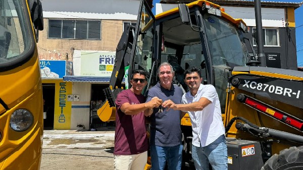 Foram entregues um ônibus para transporte de estudantes, um micro-ônibus para transporte de pacientes, e ainda, uma retroescavadeira para os trabalhos da infraestrutura.