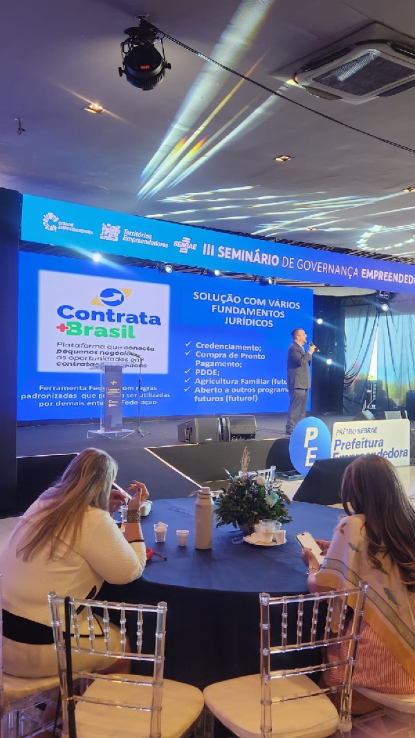 O evento reuniu gestores e lideranças para debater o futuro da gestão pública com foco em inovação e desenvolvimento regional. Participaram, o secretário municipal de Desenvolvimento, Trabalho, Agricultura e Meio Ambiente, Jefson Reis, e as Agentes de Desenvolvimento da Casa do Empreendedor, Nicácia Rebouças e Rosineide Rebouças.