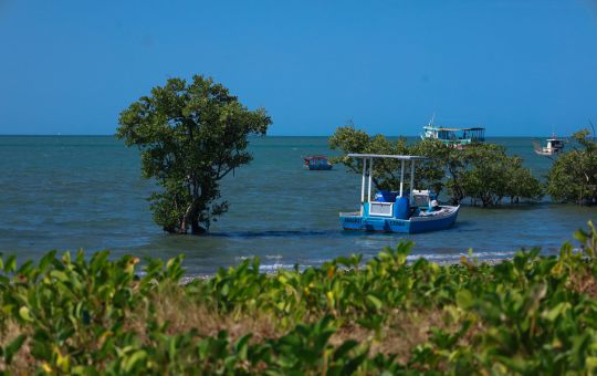 Depende da maré, geralmente é realizado na maré baixa.